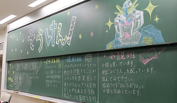 創作研究部は、イラスト・小説・模型を製作する部活動です。