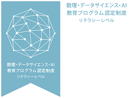 本プログラムは、文部科学省「数理・データサイエンス・AI教育プログラム認定制度(リテラシーレベル)」に令和5年度認定されました。(認定期間:令和10年3月31日まで)