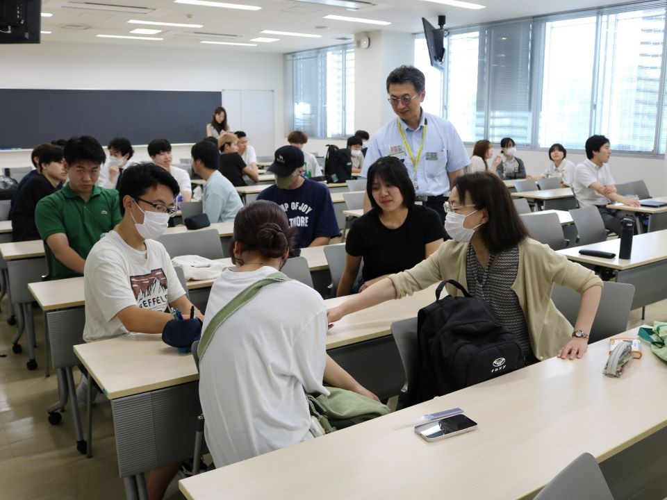 7月3日(水)2時限目、法学部の1年生ゼミ(基礎演習Ⅰ)の田中啓行先生のクラスで、東日本旅客鉄道株式会社(JR東日本)我孫子運輸区の乗務員の方々をお招きし、「やさしい日本語」による車内放送についてのお話を伺いました。